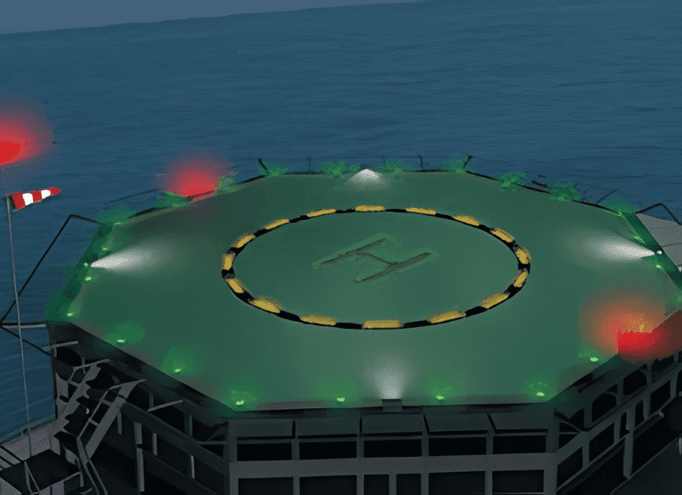 Designed for hazardous areas, our ATEX-certified helicopter landing systems ensure safe and efficient operations in explosive environments. Built to withstand extreme conditions, they provide high visibility, durability, and full compliance with international safety regulations, making them ideal for offshore platforms, refineries, and industrial sites.